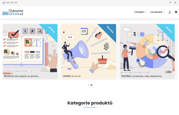 Na TisknemeOnLine.cz pracujeme na tom, abyste si mohli snadno objednat tisk letáků, vizitek, brožur i dalších tiskovin z pohodlí domova. Naší snahou je umožnít vám okamžitou kalkulaci, snadnou objednávku a rychlé dodání. Prozatím naše online nabídka není kompletní, ale usilovně pracujeme na průběžném doplňování.
