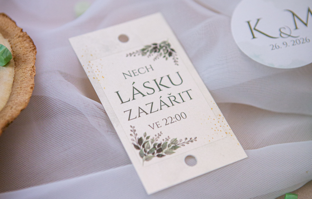- možnost potisku iniciálů novomanželů, jmenovek svatebčanů nebo krátkého osobního vzkazu