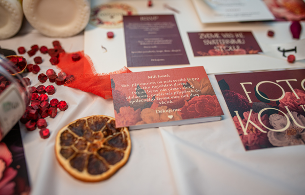 Poradíme vám s výběrem papíru, barev i povrchových úprav a postaráme se o precizní výrobu, která podtrhne jedinečnost vašeho svatebního dne.