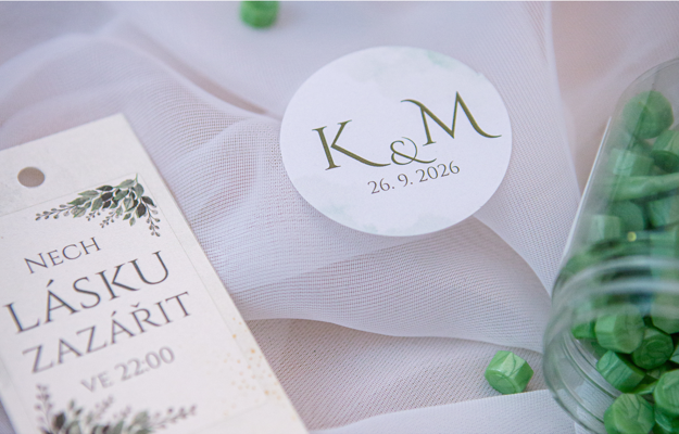 Samolepek je na svatbě potřeba spousta. Jsou ideální na dárky pro hosty, obálky nebo sladký bar. Malý detail, který dokáže krásně sjednotit celou výzdobu.